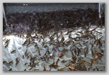 In the week between the 4th and the 11th the fry will be in 3 troughs and we are going to use the auto feeders on them. So the morning shift will not only do water temps but will reset the feeders and sprinkle out some food. The afternoon feeders can stay at home and rest.