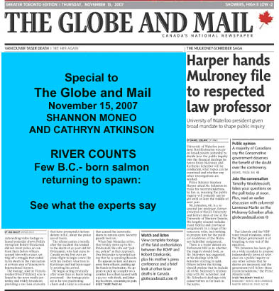 Latest news………………With the rain we have had over the last few days the Sooke River has risen significantly to a point that it has swamped our fish fence. We will have to wait and see over the next few days if we have to go half way to Japan to retrieve it.