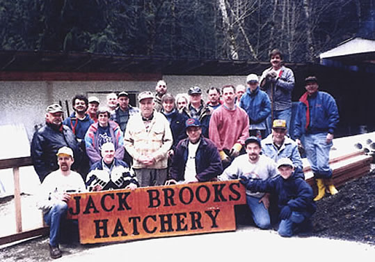 In 1981 the hatchery began operations at a location on Rocky Creek – just above the confluence of DeMamiel and Rocky Creeks. With Capilano troughs that had been discarded by other hatcheries or purchased from donations, the volunteers - now incorporated as the Sooke Salmon Enhancement Society - were able to raise fish to fry size that would have a head start on their release to the wild. The hatchery was of course named the Jack Brooks Hatchery